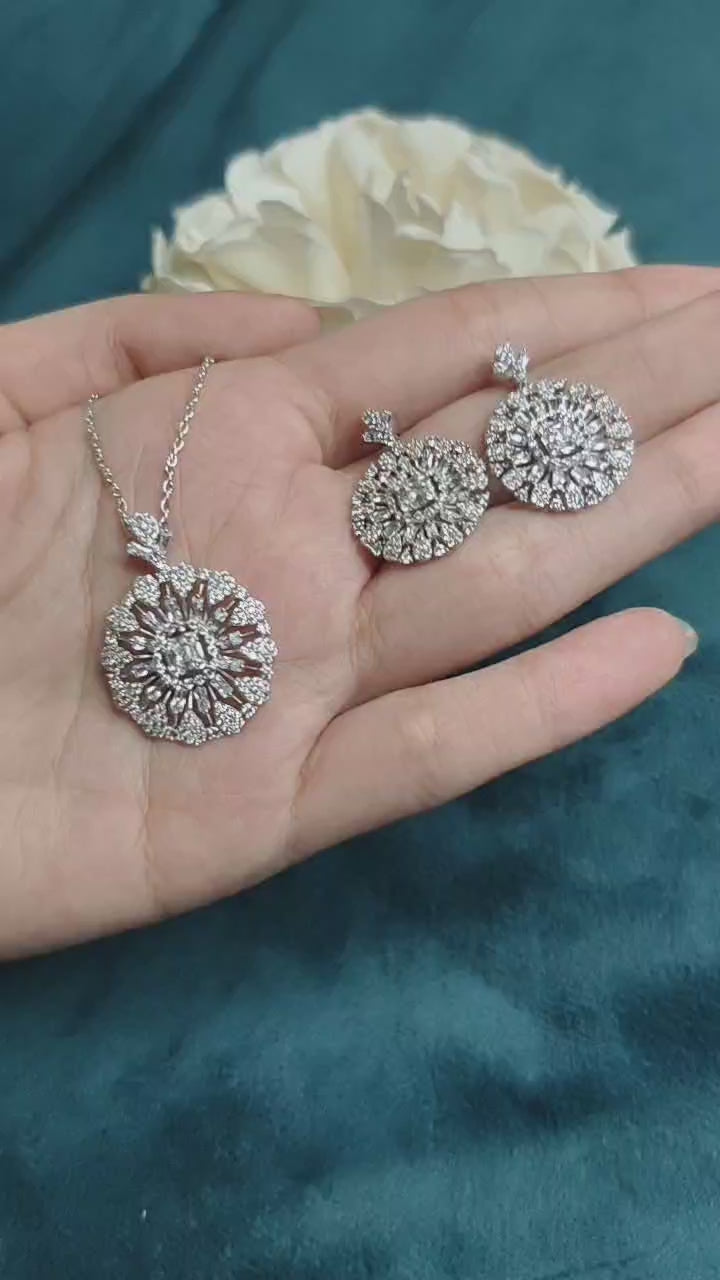 This elegant zirconia designer pendant set is a stunning blend of sophistication and sparkle. featuring a beautifully crafted pendant adorned with high-quality zirconia stones, it exudes timeless elegance. paired with matching earrings, this set captures the essence of modern luxury.