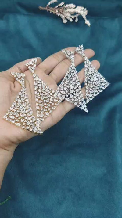 Geometric Dual Tone Marquise Diamond Cubic Zircon Triangle Statement Long Earrings