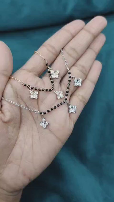 Gold And Silver Plated Cubic Zircon Delicate Clover Pendant Mangalsutra Necklace