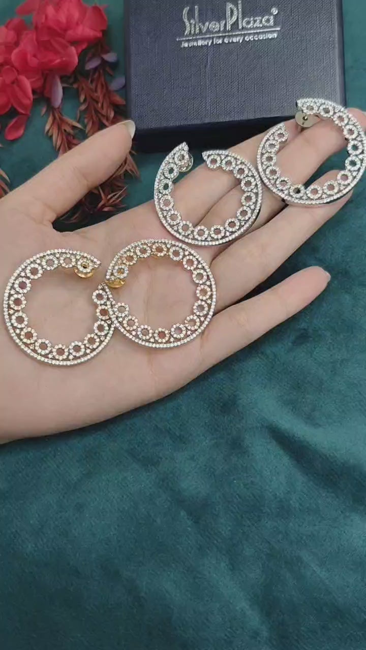 Gold-Silver Crystal Round Cubic Zircon Women Earring