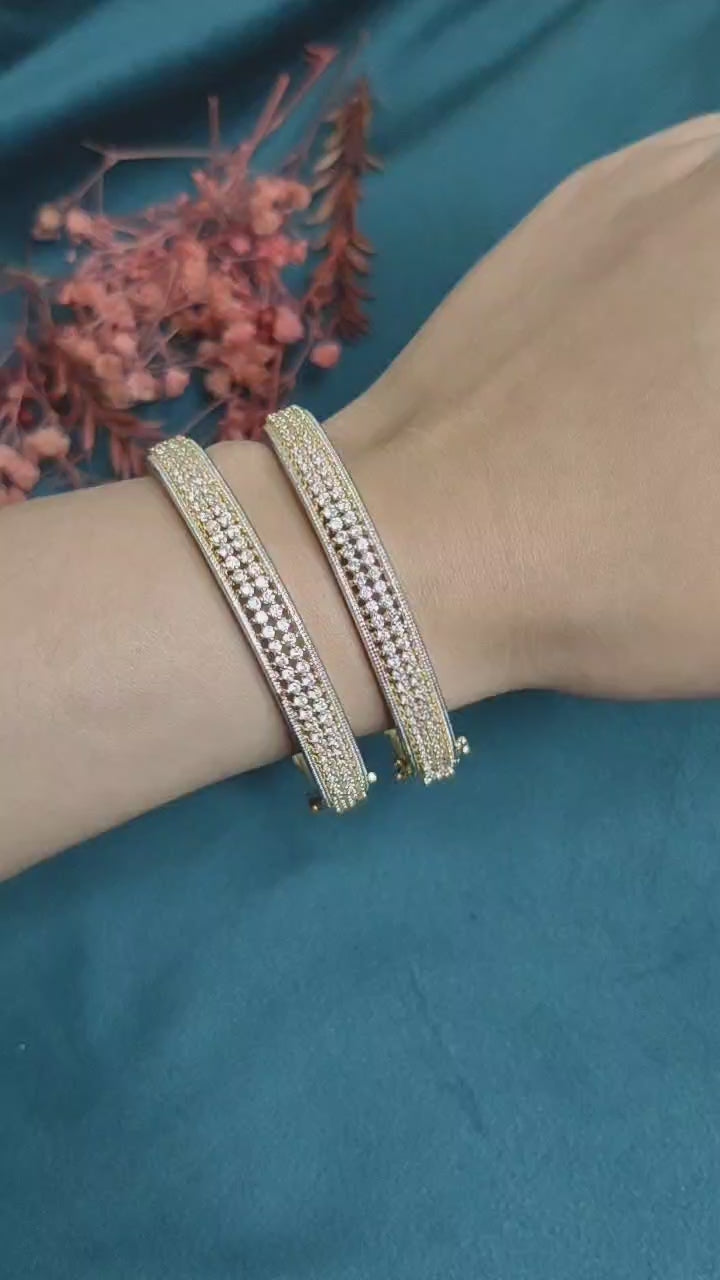 Gold-Silver Plated Openable Cubic Zircon Bangles (Pair)