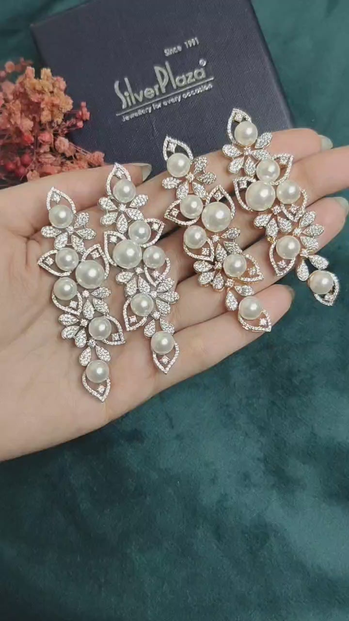 Long Pearl Drop Fusion Women Earring A Timeless Elegance These exquisite earrings are a perfect blend of classic and contemporary style. Featuring a delicate pearl drop adorned with sparkling cubic zircon accents, this design exudes elegance and sophistication.