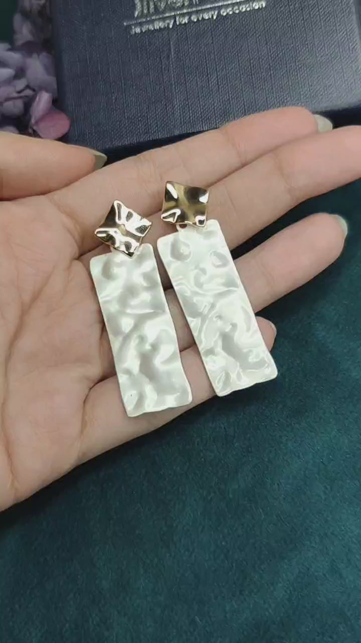 Made from high-quality sterling silver, gold-plated, or rose gold-plated metal with a unique textured finish. Long, dangling earrings with a distinctive textured surface that adds depth and a modern, artisanal look. Lightweight yet bold, designed to create a subtle statement with every movement.