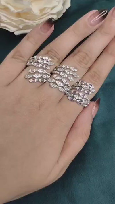 Luminous Leaf Wrap Style Gold Silver Plated Cubic Zircon Adjustable Finger Ring For Women