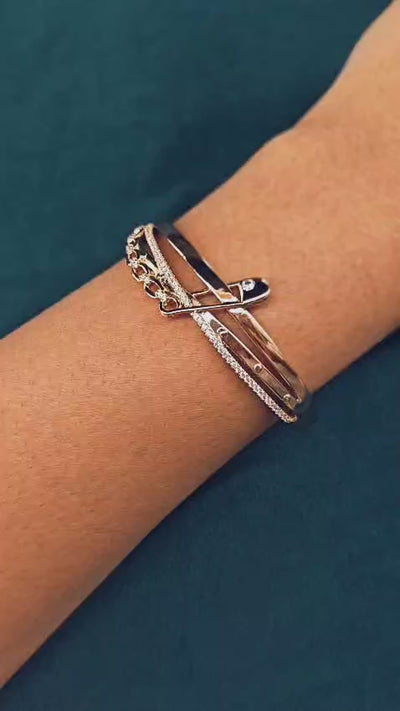 Luxurious Carat Polish Layered Cubic Zircon Openable Kada With Safety Pin And Chain Motif