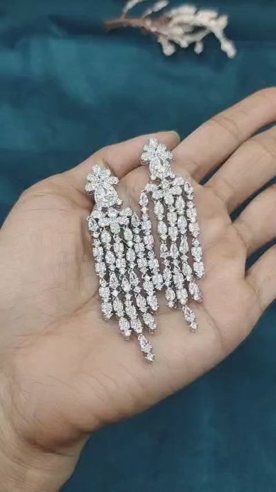 Modern Silver Plated Cubic Zircon Tear Drop Long Earrings