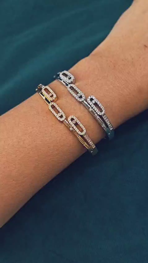 Modern Triple Link Design Gold And Silver Plated Cubic Zircon Openable Kada For Women