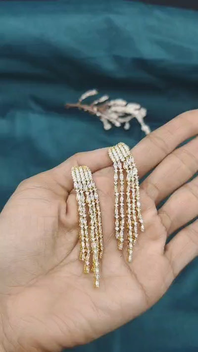 Multi Strand Marquise Diamond Gold Plated Long Earrings