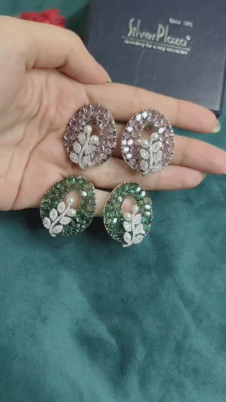 Obsession Leaf Shape Cubic Zircon Silver Plated Women Earring
