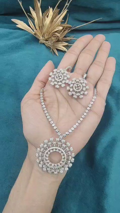 Royal Circular Style Silver Plated Cubic Zircon Short Necklace Set For Women
