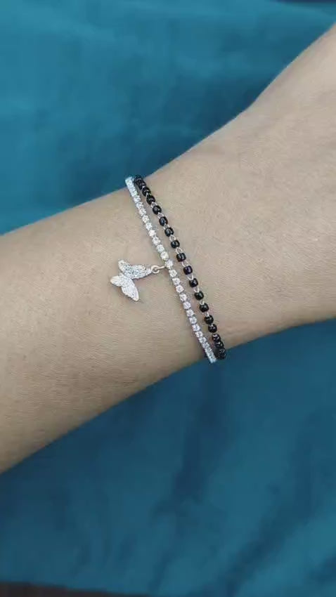 Silver Plated Double Layer Butterfly Charm Cubic Zircon Mangalsutra Loose Bracelet
