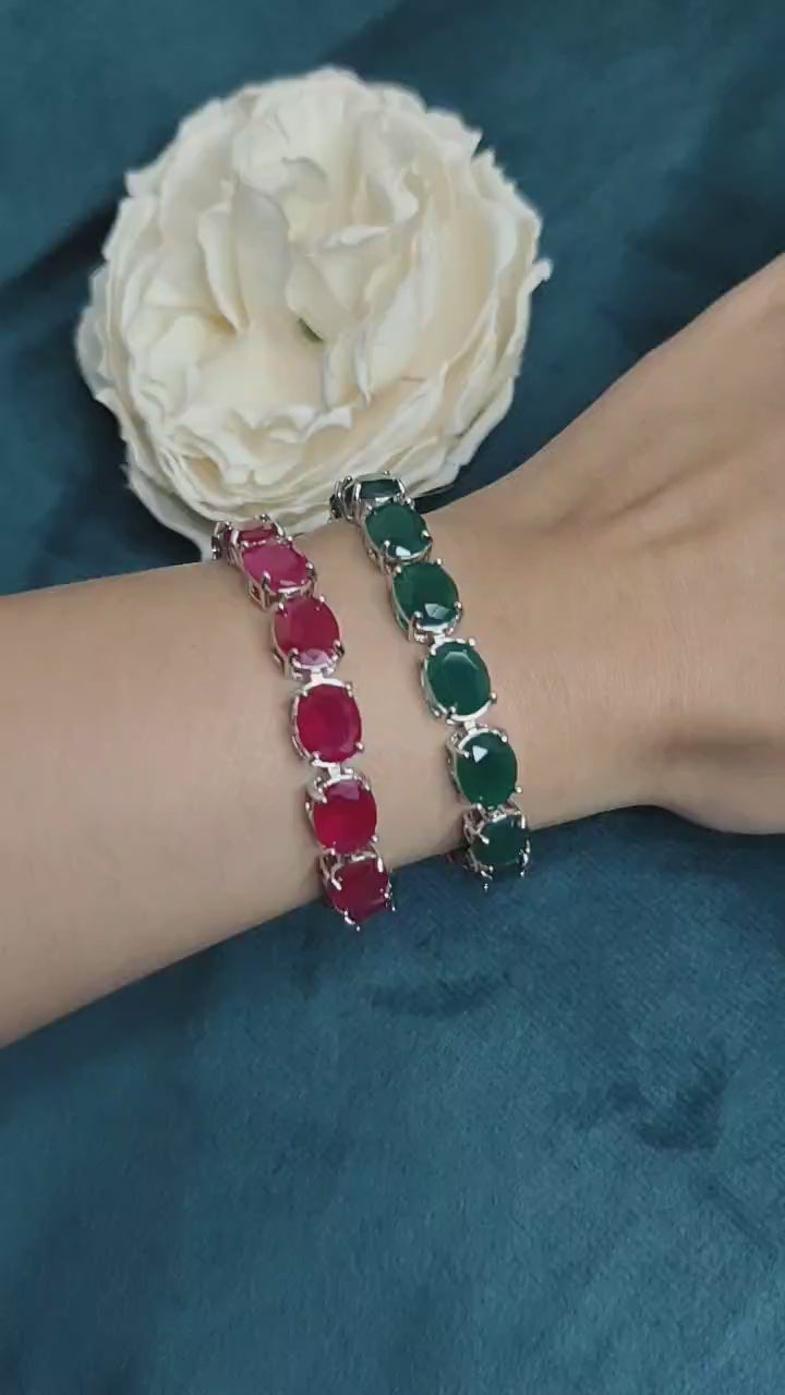 Cubic Zircon Silver-Plated Ruby-Emerald Stone Exclusive Women Loose Bracelet