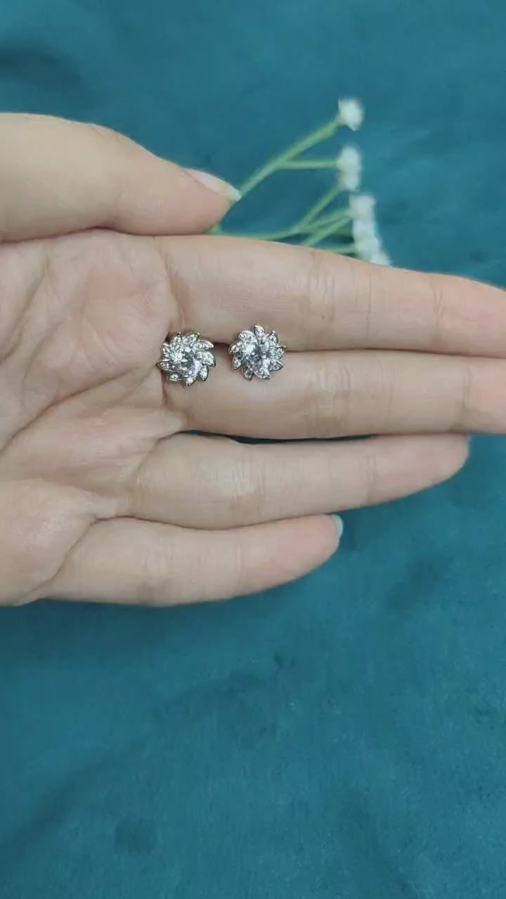 Crafted with a radiant solitaire cluster and finished in a chic silver-gold dual plating, these stud earrings offer the perfect blend of modern shine and classic charm. Ideal for everyday glam or a refined festive touch.