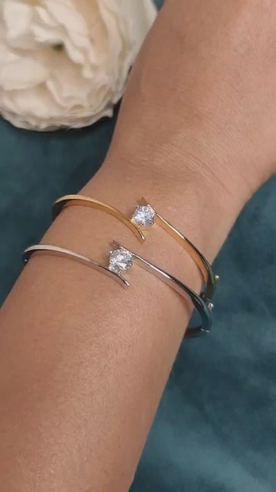 Solitaire Twist Style Gold And Silver Plated Cubic Zircon Openable Kada Bracelet For Women