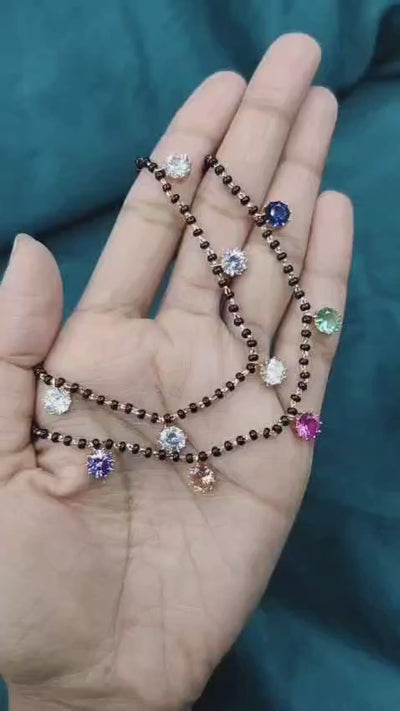 Sparkling Colorful Cubic Zircon Charms Gold Plated Mangalsutra Necklace