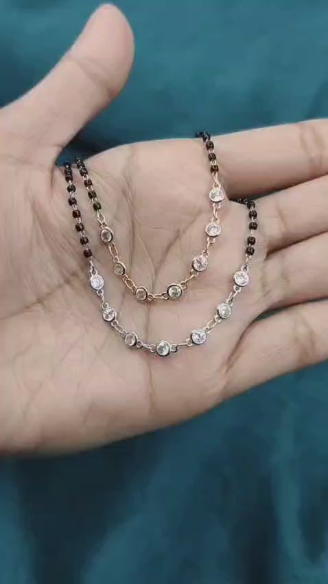 Sparkling Cubic Zircon Dual Tone Delicate Pendant Mangalsutra Necklace