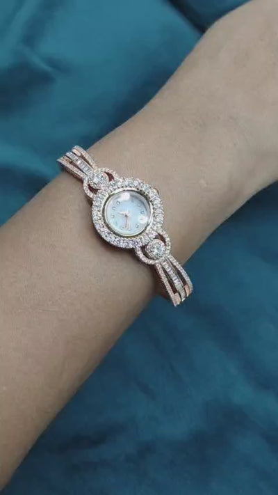Sparkling Rose Gold Plated Cubic Zircon Cuff Style Women Watch