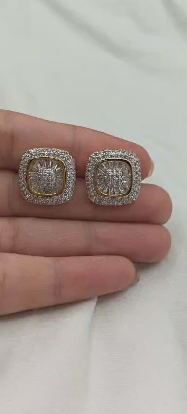 Square Shape Dual Tone Baguette Diamond Big Stud Earrings For Women
