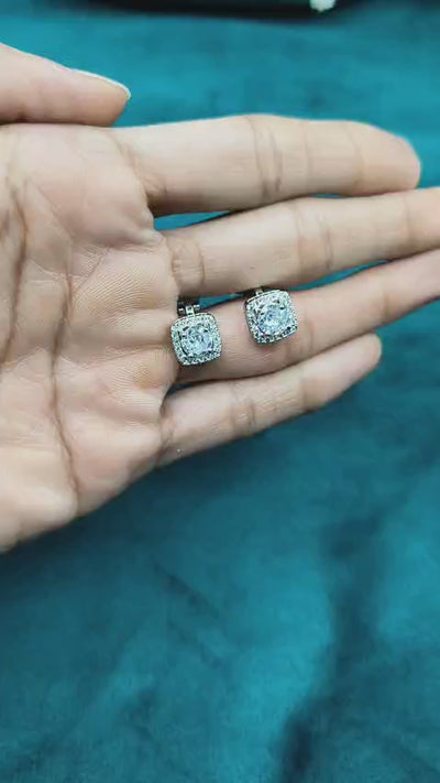 Add a touch of classic, sophisticated glamour with these silver-plated square halo clip-on earrings showcasing exceptional diamond-like brilliance. Each earring centers around a radiant cushion-cut cubic zircon stone, framed by a delicate pave-set cz halo to lend the maximum amount of sparkle. Perfect for special events or daily luxury, these comfortable clip-ons offer a secure fit without the need for pierced ears.