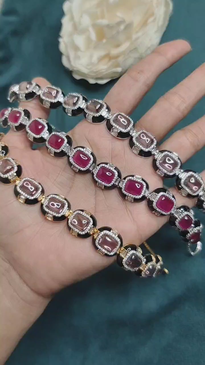 Square Stone Meenakari Cubic Zircon Gold-Silver Plated Short Necklace Set