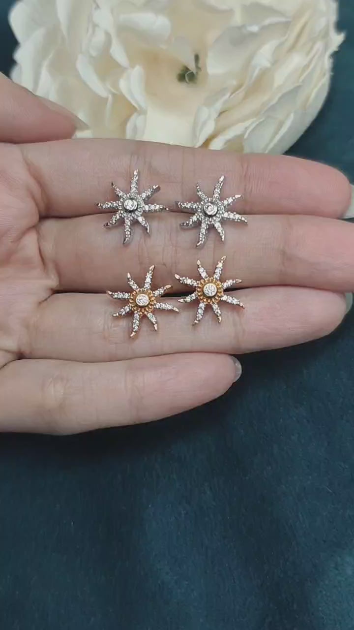 Twinkle like a star with these stunning cubic zircon stud earrings. Crafted with precision, the star-shaped design adds a touch of celestial elegance to your look. Perfect for both everyday wear and special occasions, these earrings will make you shine bright.