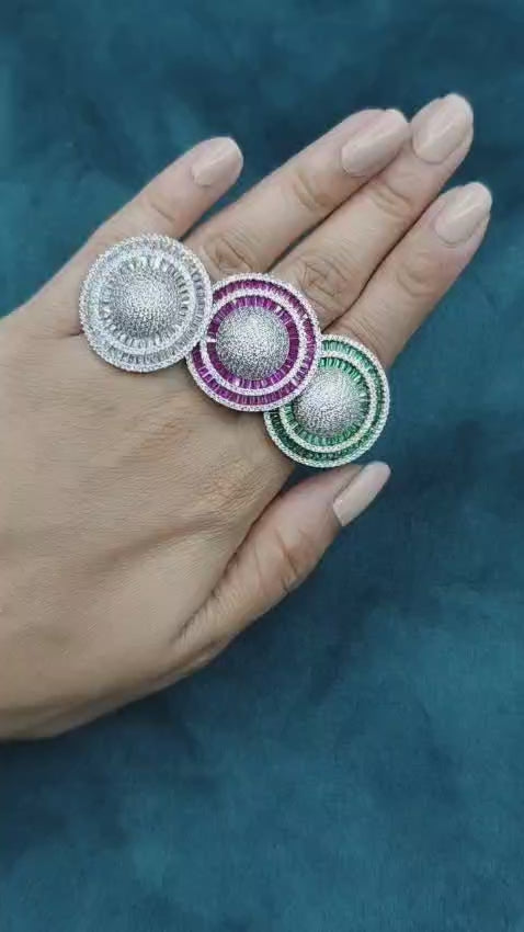 Stunning Big Circular Design Zircon Adjustable Finger Ring For Women