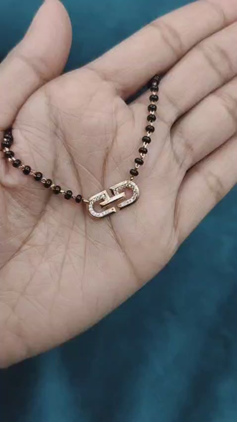 Stunning Cubic Zircon Interlocking Loop Pendant Mangalsutra Necklace