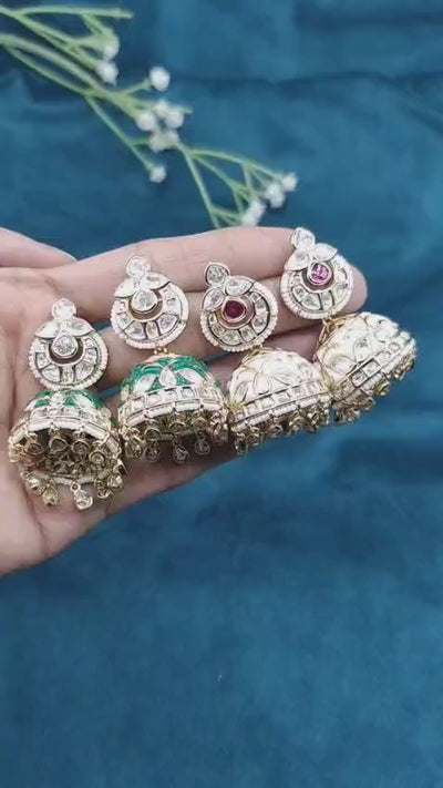 Traditional Classic Gold Polish Colourful Meenakari With Kundan And Pearl Jhumkas