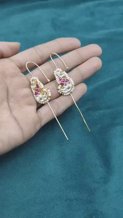 Traditional Maharashtrian Koli Peacock Style Kundan Pearl Thauja Earrings For Women