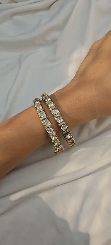 Traditional Matt Gold Openable Bangles With Polki Style Kundan Work (Pair)