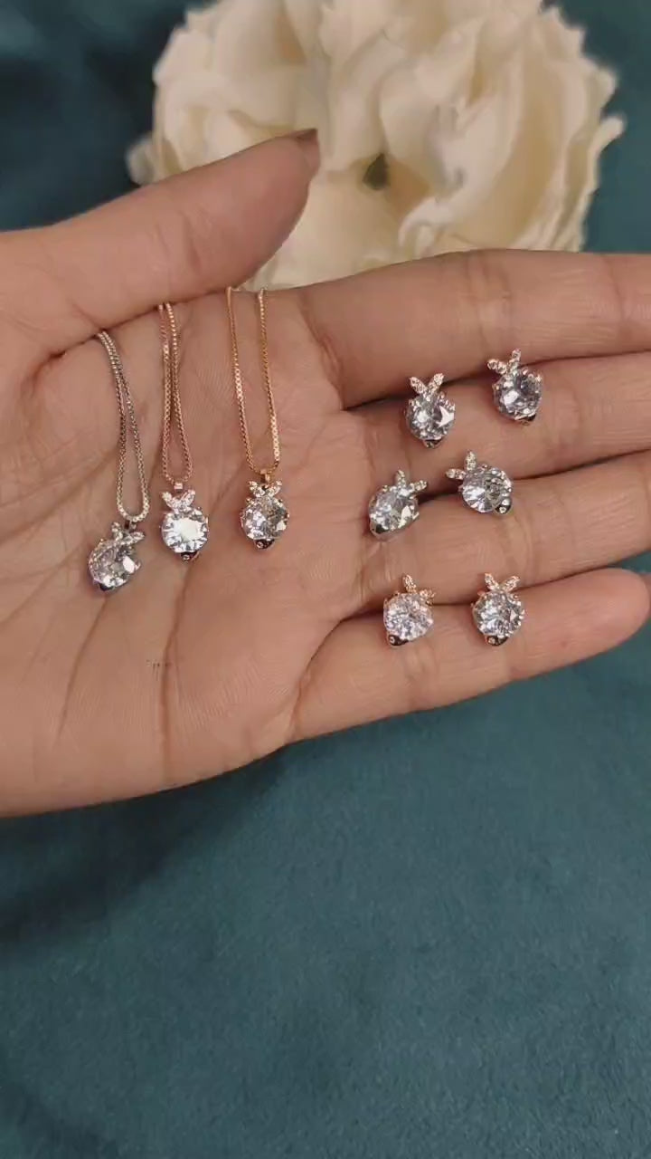Unique Design Rose Gold Plated Zircon Pendant Set