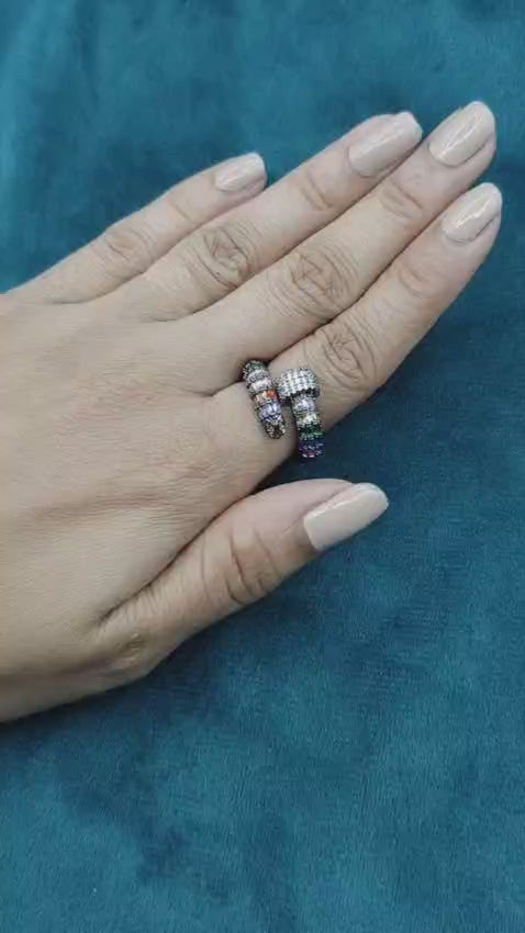Unique Design Victorian Black Polish Multi Color Adjustable Ring For Women